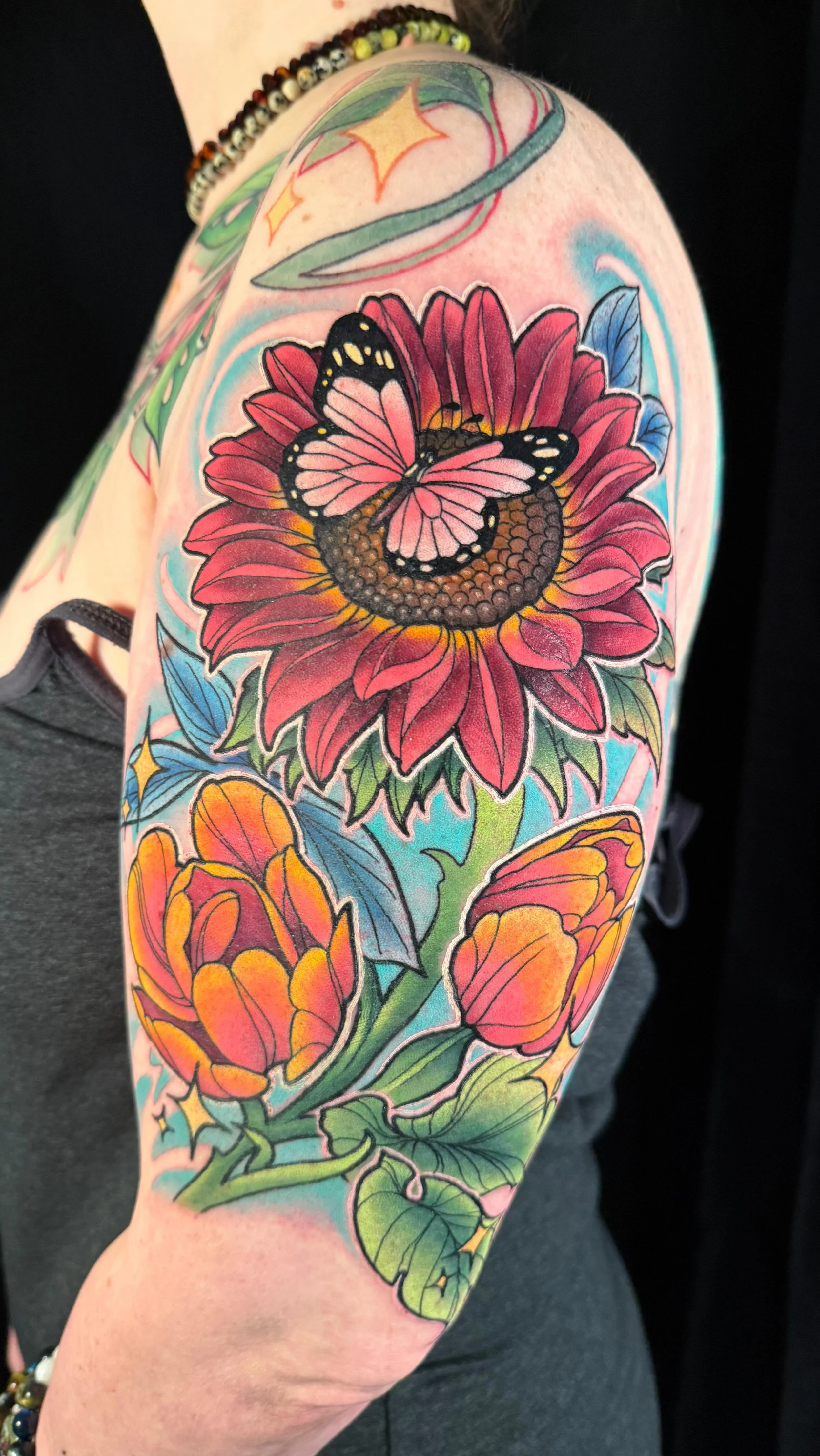 When I’m not tattooing, its likely that I’m enjoying my other passions such as; Gaming on my PC, learning about animals, and drawing for fun. I love to nerd out about my love for architecture, interior design, movies, and all things comic universe.